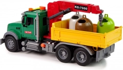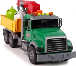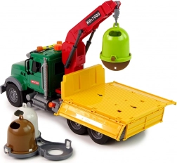 Deze gedetailleerd uitgewerkte afvalwagen vervoert alles wat nodig is – van de meegeleverde containers tot kleine speelgoedjes. De achteraanhanger is uitgerust met een beweegbare kraan die containers gemakkelijk optilt en neerzet. Op het dak van de cabine vind je een bedieningsknop voor het activeren van de kraanarm en de effecten.