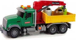 Realistische licht- en geluidsfuncties (knipperlichten, claxon, achteruitrijden) geven het spel de echte sfeer van werkvoertuigen. De speelgoedset heeft een educatieve waarde – kinderen leren de basis van ecologie en afvalscheiding, en ontwikkelen fijne motoriek en fantasie.