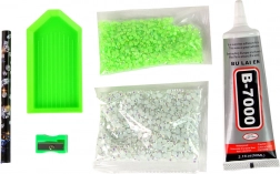 De verpakking bevat een speciale ondergrond voor het plaatsen van de steentjes en speciale lijm die een kleverige laag op de figuur creëert, zodat de steentjes stevig blijven zitten. Maak je eigen decoraties en versier je kamer ermee. De set is ontworpen om ontspanning en verrijking van vrije tijd te bieden aan zowel kinderen als volwassenen.