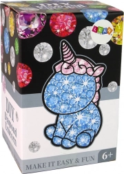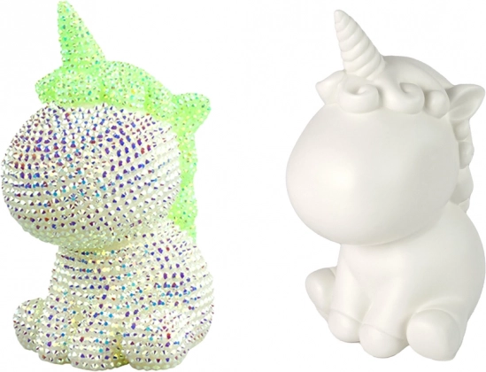 De set bevat twee kleuren kristallen waarmee je de eenhoorn naar eigen inzicht kunt versieren.