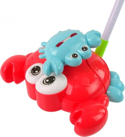 Het interactieve duwspeeltje krab brengt niet alleen vreugde aan kinderen, maar stimuleert ook hun gehoor en zicht. Wanneer kinderen de krab naar voren duwen, horen ze een aangenaam belgeluid. Grote rode krab met een kleine blauwe krab bovenop, die draait bij elke beweging naar voren.