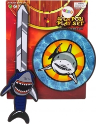 Ridderset van EVA-schuim – zwaard en schild met haaienmotief