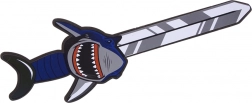 De opvallende haaigrafiek op het zwaard en het schild stimuleert de verbeelding en maakt van elk avontuur een epische zee-expeditie.