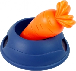 De set bevat een bakje en een plastic worteltje. Kinderen kunnen het konijntje “voeren” en de zorg voor een echt diertje nabootsen.