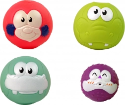 De set bevat vier rubberen ballen met dierenmotieven, zoals krokodil, nijlpaard, vis en aapje, die bij indrukken grappig water spuiten. Het basketbalnetje heeft een rits en verandert eenvoudig in een opbergruimte voor speelgoed. Sneldrogend om schimmelvorming te voorkomen.