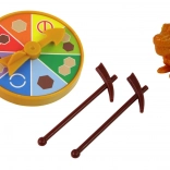 Draai aan het wiel en bepaal welke kleur blokje je moet verwijderen. Eén beslissing kan het verloop van het spel veranderen.