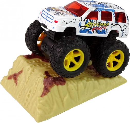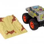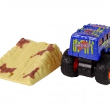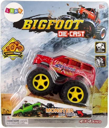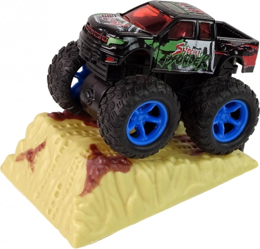 - wrijvingsaandrijving, gewoon naar achteren trekken en loslaten en de monstertruck schiet met duizelingwekkende snelheid weg.