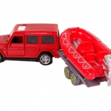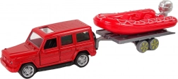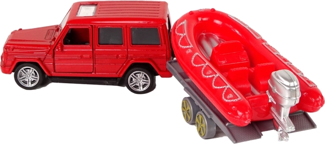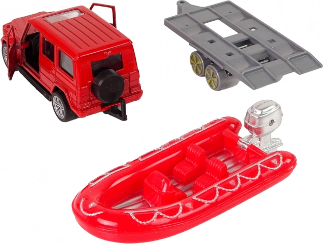 Opblaasbare boot op een aanhanger, ideaal voor reddingsacties op het water, kan aan de auto worden gekoppeld.