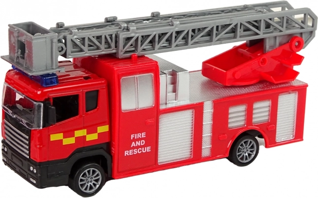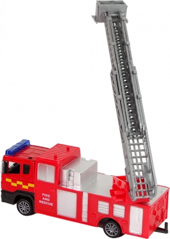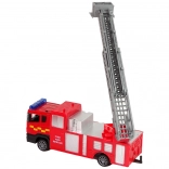 Voertuig met een uitschuifbare ladder met een bereik van 32 cm, dat eruitziet als een authentieke brandweerwagen. Wrijvingsaandrijving verhoogt de realiteitsbeleving.