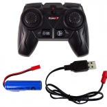 De specificaties omvatten realistische motor geluiden, LED-verlichting en de mogelijkheid om geluiden en verlichting via de zender uit te schakelen. De combine en de afstandsbediening worden gevoed door respectievelijk een 3,7 V-accu en 2 x AA-batterijen, wat langdurig speelplezier garandeert.