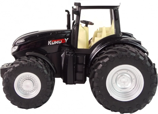 Deze zwarte afstandsbestuurbare tractor biedt kinderen een authentieke boerderijervaring. De cabine is natuurgetrouw gemodelleerd naar een echte machine, de grote rubberen wielen kunnen over gladde oppervlakken en huiselijke obstakels rijden, en de stevige metalen constructie verhoogt de duurzaamheid bij dagelijks spelen. De LED-verlichting voor gaat branden tijdens het rijden en voegt veel realisme toe aan het spel.