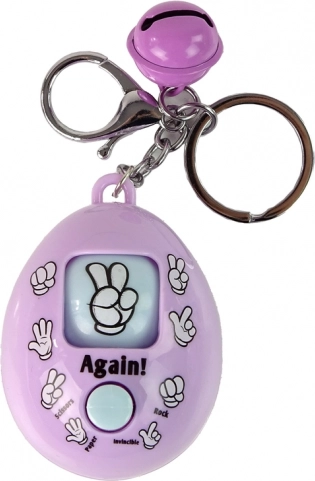 Een leuke en kleurrijke eivormige sleutelhanger met het geïntegreerde spel steen, schaar, papier. Druk op de middelste knop en er verschijnt een willekeurig symbool. Ideaal als stijlvolle accessoire voor sleutels, rugzak of handtas, met een praktische ring en karabijnhaak voor eenvoudig bevestigen en een klein belletje dat helpt je sleutels snel terug te vinden.