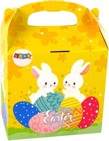 Praktische geschenkverpakking met konijnen en eieren, gemakkelijk te dragen dankzij het handvat. Ideaal paascadeau voor kinderen.
