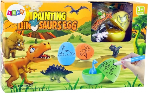 Deze uitgebreide doe-het-zelf set zal alle kleine dinofans blij maken. In de doos vind je 4 eieren om in te kleuren, 6 gedetailleerde figuren, een mat met prehistorische omgeving en accessoires om de scène af te maken. De eieren kunnen veilig worden tentoongesteld op stabiele vulkaanstandaards, de figuren van hard rubber zijn duurzaam en liggen prettig in de hand.