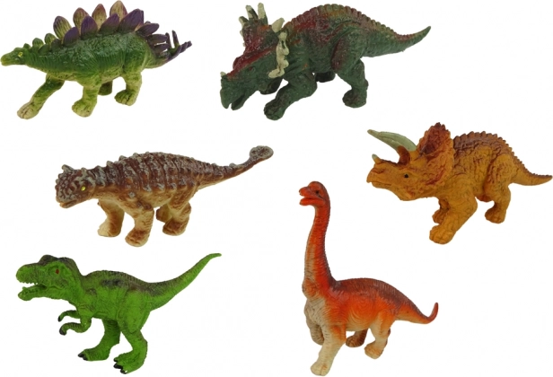 Zes gedetailleerde figuren van hard rubber beelden verschillende dinosaurussoorten natuurgetrouw uit. Ideaal om mee te spelen en om te leren over prehistorische wezens.