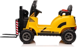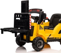 De elektrische kinderheftruck VZV in een opvallende gele kleur zorgt niet alleen voor uren speelplezier, maar helpt kinderen ook hun motorische vaardigheden te ontwikkelen. Hij is ontworpen met oog voor detail en functionaliteit, vergelijkbaar met echte heftrucks: