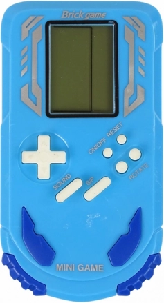 De compacte pocketconsole Brick Game in blauwe kleur biedt plezier altijd en overal. Hij heeft 23 spellen, eenvoudige bediening via de knoppen ROTATE en pijltjes, keuze van moeilijkheidsgraad en snelheid. Perfect voor in de rugzak, stimuleert de motorische vaardigheden en verbeelding van kinderen. Geschikt als een geweldig cadeau.