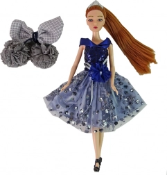 Emily valt op met haar glanzende blauwe jurk met glitters en elegante tiara – ideaal voor modeshows en sprookjesverhalen.