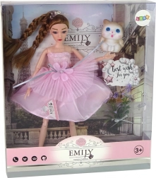 Pop Emily zal kinderen aanspreken die van mode houden en graag hun eigen verhalen verzinnen. De roze jurk met bloemmotief en strik, zwarte pumps en subtiele gelaatsdetails maken van Emily een elegante vriendin voor dagelijks spelen. Dankzij de bewegende ledematen kan ze gemakkelijk zitten, staan of in favoriete poses worden gezet.