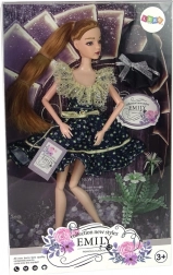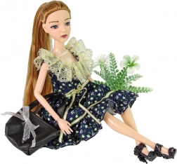 Ontdek de wereld van mode met pop EMILY – de ideale keuze voor creatief spel, modeshows thuis en alledaagse verhaaltjes. De pop draagt een prachtige donkerblauwe jurk met witte bloemetjes en bijpassende zwarte pumps met hak. Het lange haar nodigt uit tot kammen en het maken van kapsels, terwijl de beweegbare ledematen natuurlijke poses mogelijk maken alsof ze op een echte catwalk staat.