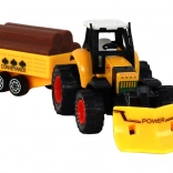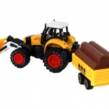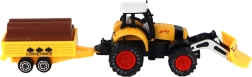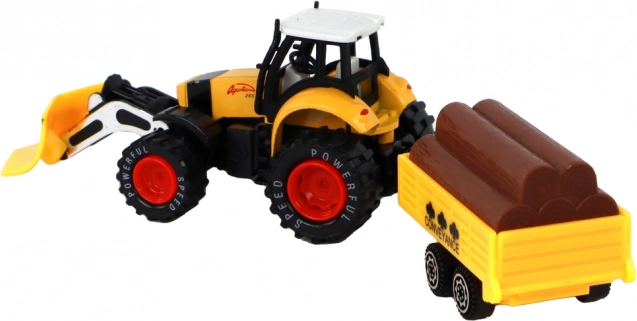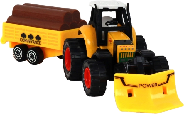 De tractor is uitgerust met frictie-aandrijving, wat eenvoudig bewegen van de tractor mogelijk maakt. Kinderen kunnen spelen alsof ze op een boerderij werken en diverse materialen vervoeren met de aanhanger, die voorzien is van namaak boomstammen.
