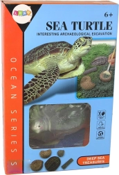 Complete educatieve set voor liefhebbers van onderwaterleven en archeologie. Binnenin het realistische fossiel van de schildpad met afmetingen van 14 cm x 11 cm vind je verborgen opgravingen zoals ammonieten.