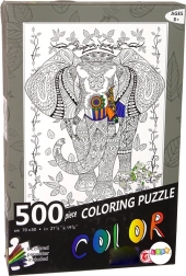 Duik in een wereld van creatieve pret met 500 zwart-witte puzzel stukjes en 6 stiften om ze in te kleuren. Leg het beeld van een olifant omringd door bladeren en toon het trots als wanddecoratie of als placemat.
