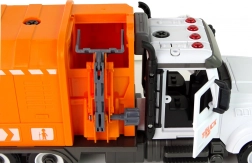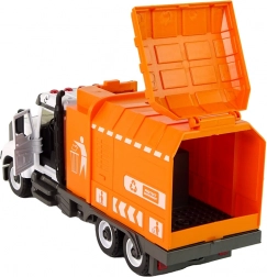 Deze gedetailleerd uitgewerkte vuilniswagen laat kinderen zich inleven in de rol van afvalophalers. Realistische elementen zoals voordeuren en achterdeuren die open kunnen, een bewegende lift voor vuilnisbakken en robuuste wielen zorgen voor uren speelplezier. De frictie-aandrijving zorgt voor een soepele beweging over de vloer zonder batterijen.