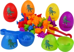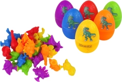 De set biedt zes kleurrijke eieren, waarin vrolijke dinosaur figuren met zuignappen verborgen zijn. Kinderen kunnen de eieren openen, hun schatten ontdekken en de kleine dino's sorteren op kleur of soort. Dankzij de zuignappen kunnen de figuren op verschillende oppervlakken worden bevestigd, wat de speelopties verrijkt en de creativiteit van kinderen bevordert.