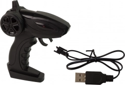 De auto wordt gevoed door een oplaadbare accu die bij de set is inbegrepen, terwijl de afstandsbediening werkt op twee 1,5 V AA-batterijen die niet zijn inbegrepen.