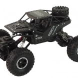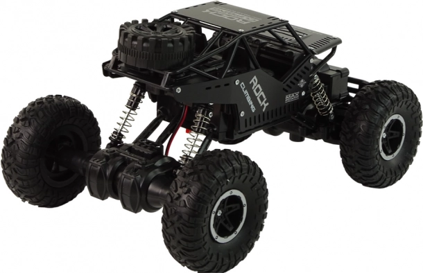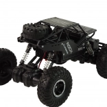 Het voertuig heeft een elegante zwarte kleur die een agressieve en stijlvolle uitstraling geeft, vergelijkbaar met terreinwagens die in zware omstandigheden worden gebruikt.