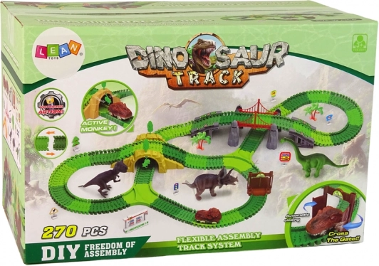 Duik in de wereld van dinosaurussen met deze fantastische baan, bestaande uit eenvoudige baandelen die gemakkelijk aan elkaar te koppelen zijn om verschillende routes voor dinosaurussen te maken. De set bevat kleurrijke en realistische figuren van deze indrukwekkende wezens en accessoires zoals bomen en planten om een authentieke omgeving te creëren.