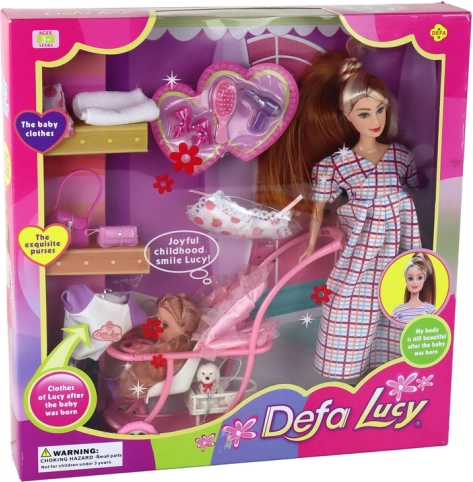 De kinderwagen geeft de scènes realisme en maakt uitstapjes met Lucy en haar “kinderen” mogelijk. Het design wordt aangevuld met een pluchen hondje en werkende wieltjes.