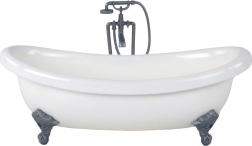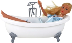 De stijlvolle witte badkuip met metalen pootjes verandert elk spel in een spa-ervaring. Ideaal voor ontspanningsscènes en de verzorging van de pop.
