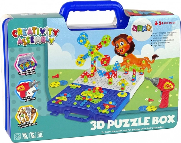 De 3D-puzzelset in een stijlvolle koffer is een unieke en innovatieve speelgoedset die de creativiteit en verbeelding van uw kind stimuleert. De map met 450 gaten dient als bord voor het leggen van de puzzel en het praktische ontwerp zorgt voor eenvoudig meenemen.