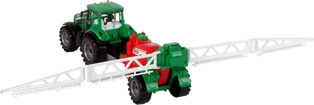 Deze gedetailleerde groene tractor met een rood‑groene sproeiwagen biedt kinderen volop actie en verbeelding. Dankzij de wrijvingsaandrijving rijdt hij gemakkelijk weg en kan hij zowel vooruit als achteruit, terwijl de bewegende armen van de sproeiwagen realistische landbouwscenario’s mogelijk maken.