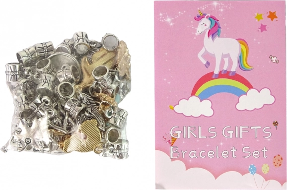 De verpakking bevat dertig plastic kralen en zestig zilveren en gouden kralen met vrolijke motieven. Ontworpen voor het maken van creatieve en persoonlijke armbanden.
