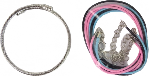 Onze Doe-het-zelf set voor het maken van armbanden is de perfecte combinatie van creativiteit en schoonheid. Stapsgewijze instructies helpen je de technieken voor het maken van armbanden te begrijpen en brengen veel inspiratie en nieuwe ideeën voor patronen. De set biedt de mogelijkheid om gevarieerde composities te creëren met drie meerkleurige koorden (roze, blauw en zwart) van 42 cm lengte en twee zilveren kettingen van 12 cm lengte.