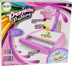 Deze roze projector, speciaal ontworpen voor kinderen, maakt het kopiëren van beelden van de bijgeleverde sjablonen mogelijk en projecteert deze bijvoorbeeld op een muur. Het beeld kan worden scherpgesteld met een verstelbare lens. De projector biedt plezier en verbetert de fijne motoriek door precisie en nauwkeurigheid te stimuleren bij het tekenen en schrijven.