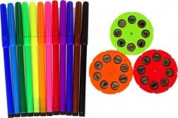 Dankzij de opbergla is het eenvoudig om de creatieve ruimte netjes te houden en alle benodigde gereedschappen binnen handbereik te hebben. Het product is voorzien van 12 kleurstiften en 3 schijven met verschillende afbeeldingssjablonen.