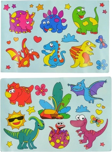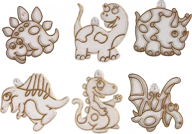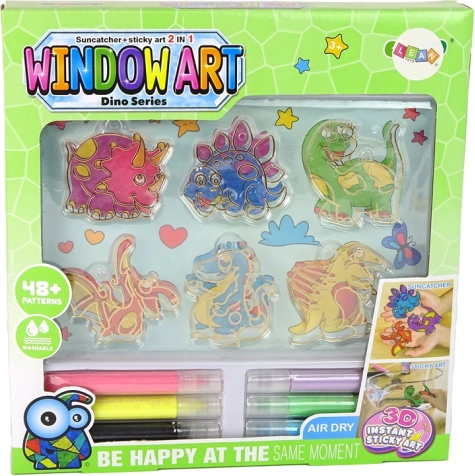 De set bevat ook 6 glas-in-loodfiguren in de vorm van dinosaurussen die met speciale zuignappen op glas kunnen worden bevestigd.