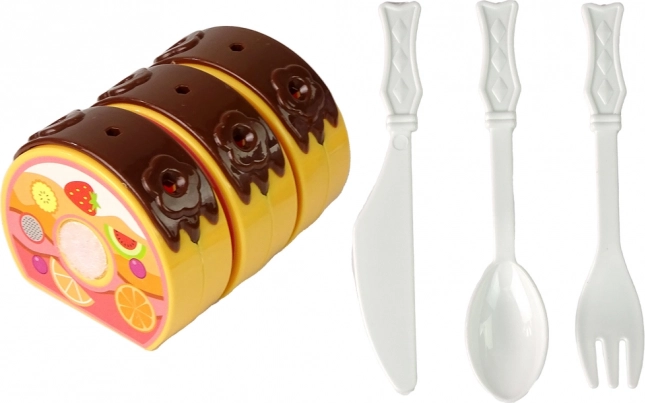 Het plastic mes en bestek zijn geschikt voor kleine kinderen. Tijdens het snijden en serveren ontwikkelen ze fijne motoriek, coördinatie en sociale vaardigheden.