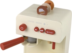 De kwalitatieve combinatie van hout en kunststof is duurzaam en prettig om aan te raken. Spelen met de koffiemachine ontwikkelt de fijne motoriek, oog-handcoördinatie en sociale vaardigheden bij samen spelen. Dankzij de compacte afmetingen is de machine makkelijk te verplaatsen en op te bergen.