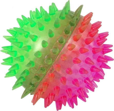 Leuke transparante bal met zachte spikes die bij een lichte schudbeweging tweekleurig licht gaat geven. Gemaakt van veilig rubbermateriaal zonder schadelijke stoffen, eenvoudig te reinigen en ideaal voor spel binnen en buiten. Ondersteunt uitstekend de ontwikkeling van de fijne motoriek en heeft ook revaliderende effecten.