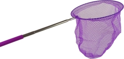 Ontdek de natuur op speelse wijze! Dit paarse netje met een telescopische steel past zich eenvoudig aan de behoeften van kinderen en volwassenen aan. De zachte schuimhandgreep ligt comfortabel in de hand en glijdt niet weg, terwijl het fijne netmateriaal vriendelijk is voor vlinders en andere kleine dieren.