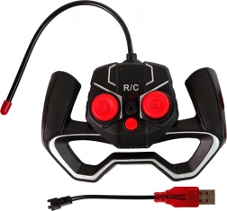 De lichte controller met twee sticks ligt uitstekend in de hand. De auto-accu laad je eenvoudig op met de meegeleverde USB 2.0-kabel.