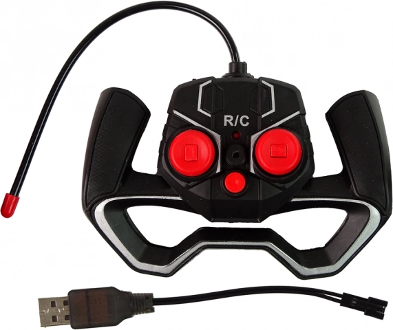 Bediening is simpel en leuk: met de rechter joystick/knop stuur je, met de linker kies je de rijrichting vooruit en achteruit. Rubberen banden bieden uitstekende grip en veerende schokdempers vangen klappen op. De geïntegreerde oplaadbare accu en USB-oplader houden de gebruikskosten laag.