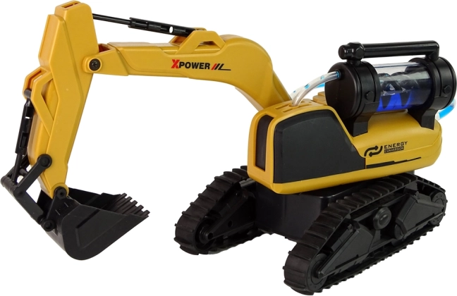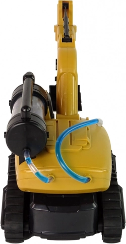 Rubberen rupsbanden zorgen voor stabiele en soepele beweging op verschillende ondergronden, terwijl geluidseffecten en het visuele element met blauwe vloeistof aan de bovenzijde van de machine de speelervaring een authentieke bouwplaats-sfeer geven. De ergonomische controller ligt goed in kleine handen.