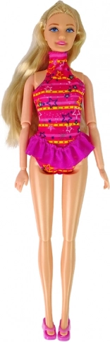 De pop is uitgerust met lang blond haar en een prachtige roze zwemoutfit die elk spel ondersteunt.