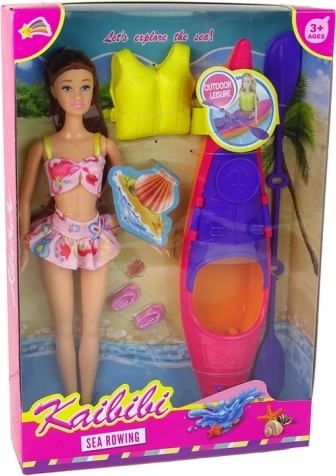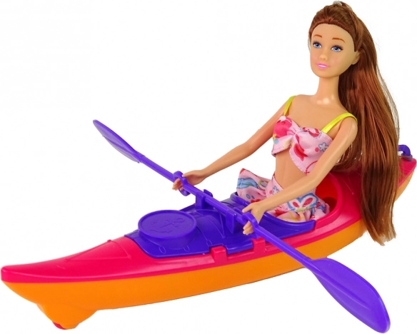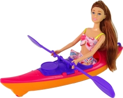 Ontdek het plezier van avontuur met deze geweldige poppen- en kajakset. De collectie omvat een pop in kleurrijke strandkleding, klaar voor waterexpedities. Het lange bruine haar van de pop glinstert prachtig in de zon en de roze sandalen met bandjes geven een stijlvolle touch. De heldere roze kajak biedt realistische speelkenmerken met een beweegbare peddel en een gele reddingsvest voor veilig waterplezier.